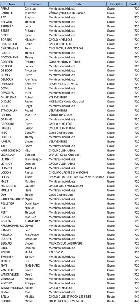 Si au niveau du cyclotourisme, une base sérieuse existait avec les différents parcours déjà disponibles (diagonales, triangles et autres tours de province), le Gravel et le VTT posaient question vu le peu d’intérêt porté à ce genre de classement par les protagonistes.