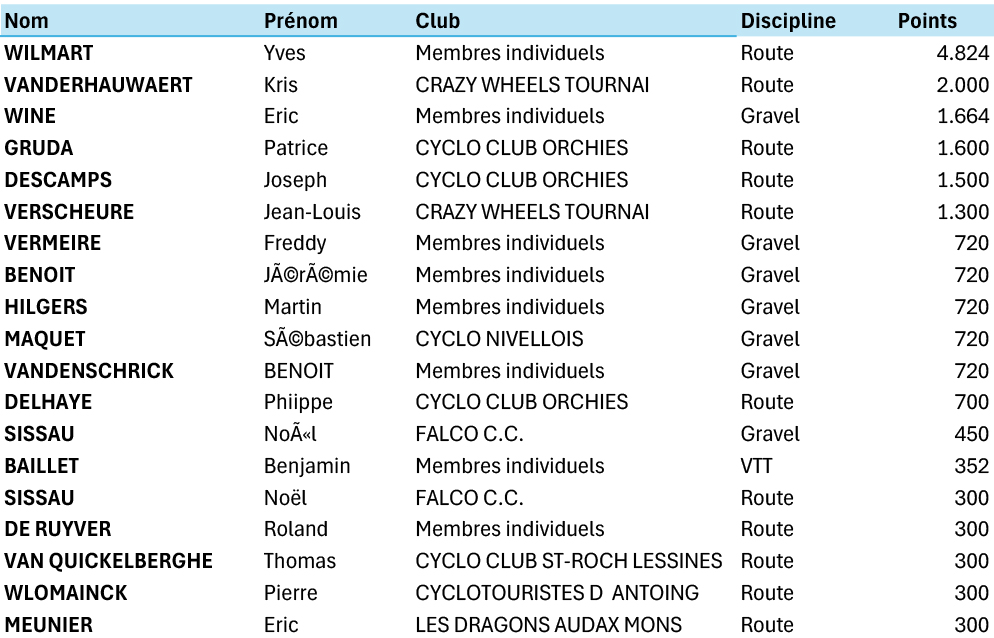 L’offre complète se trouve dans le calendrier sur le site velo-liberte.be, sélectionner le challenge « ULTRA ».